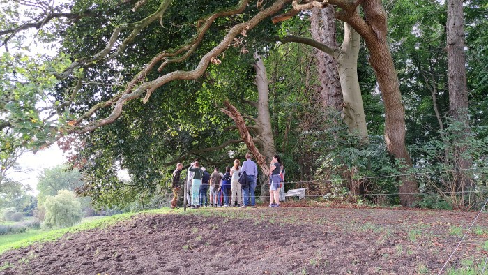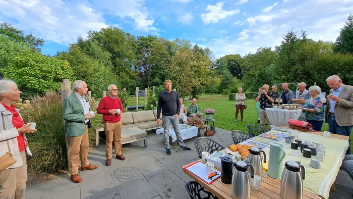 We werden hartelijk ontvangen door de eigenaren, Jan en Jannicke Kromkamp. Jan heeft ons het landgoed laten zien, dat ten westen van de IJssel, net buiten Twello, ligt. De familie Kromkamp is sinds 2018 eigenaar en hebben al heel veel aan het landgoed verbeterd, zoals het herstellen van de unieke riviereendenkooi, slechts één van de twee die nog in Nederland bestaan. Een ander project was het terugbrengen van de lanen van het sterrebos. Dat is uitgevoerd aan de hand van oude bodemkaarten.
