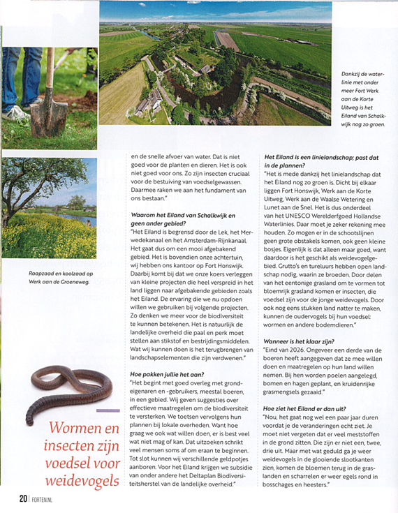 Michel: "We willen op 5 procent van het Eiland, dat zijn zo'n 500 hectare groot is, maatregelen nemen om de biodiversiteit te herstellen. Je moet dan denken aan de aanleg van poelen en glooeiende slootkanten, het inzaaien van bloemrijke graslanden en het aanplanten van knotwilgen, heggen en hagen".
